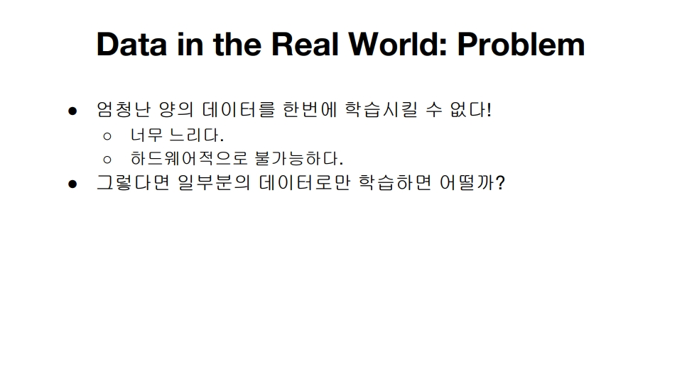 전체 데이터로 경사 하강법을 수행할 경우 연산량도 많고 훈련 속도도 느리기 때문에 미니 배치 단위로 수행