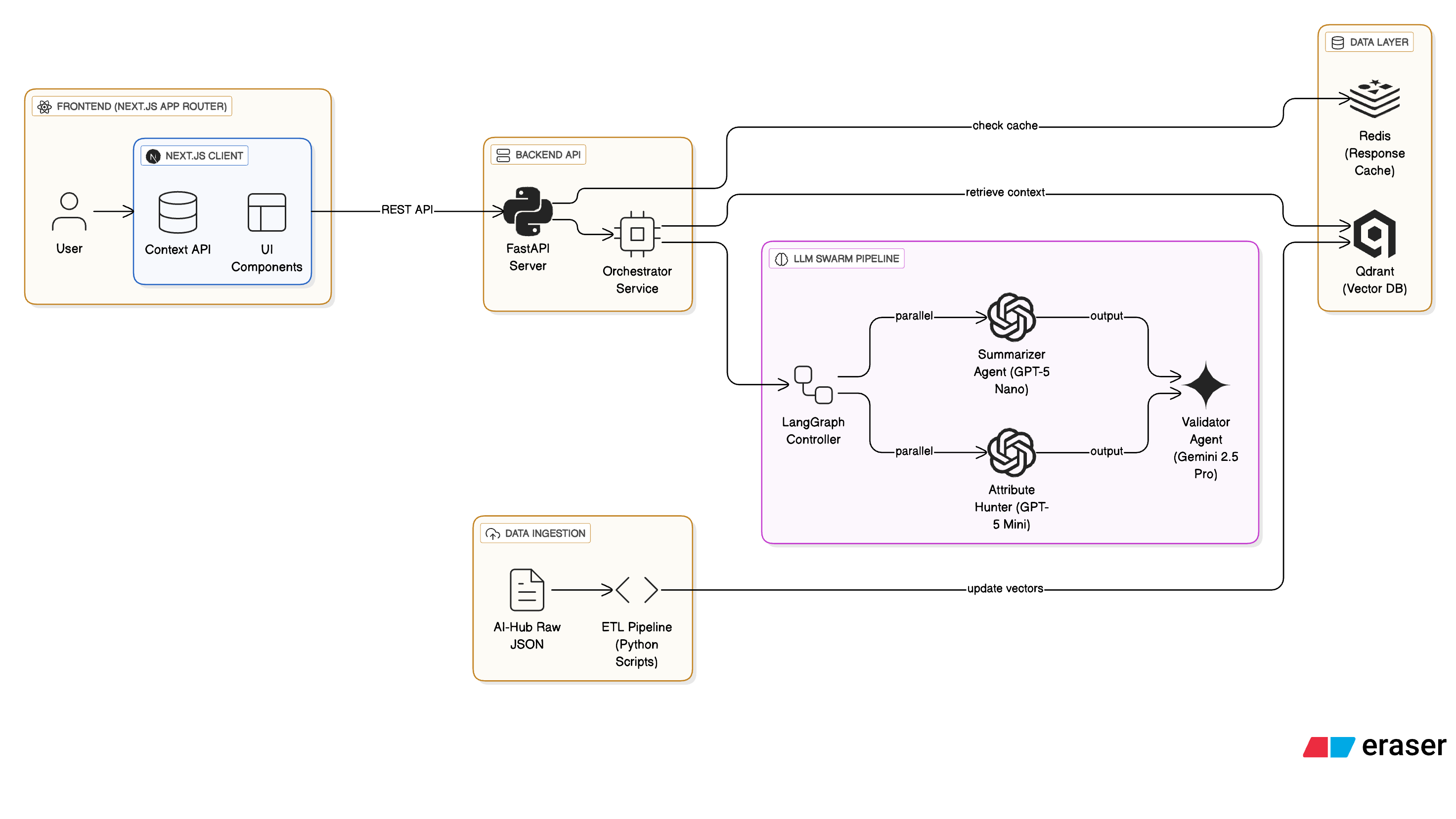 이 세 에이전트는 LangGraph로 오케스트레이션 됩니다. 특히 요약과 속성 발견 에이전트는 asyncio.gather를 통해 병렬로 동시 실행되어 전체 응답 시간을 획기적으로 단축시켰습니다.